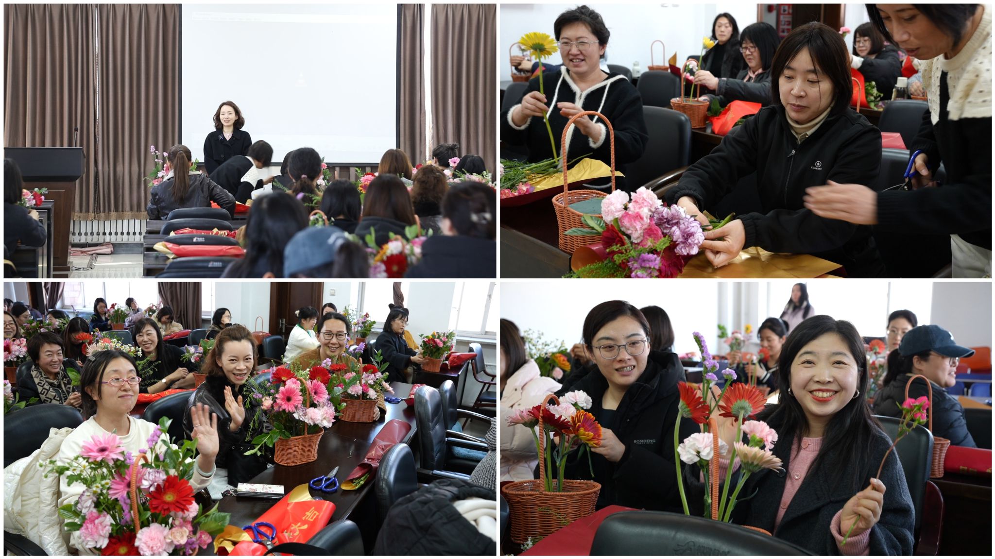 活动现场,学院工会主席贾莉向全体女教职工致以节日的美好祝福,感谢她们在教学科研、管理等岗位上的辛勤付出与巾帼担当,希望女教职工们能在本次花艺创作活动中放松身心、陶冶情操,感受生活之美。